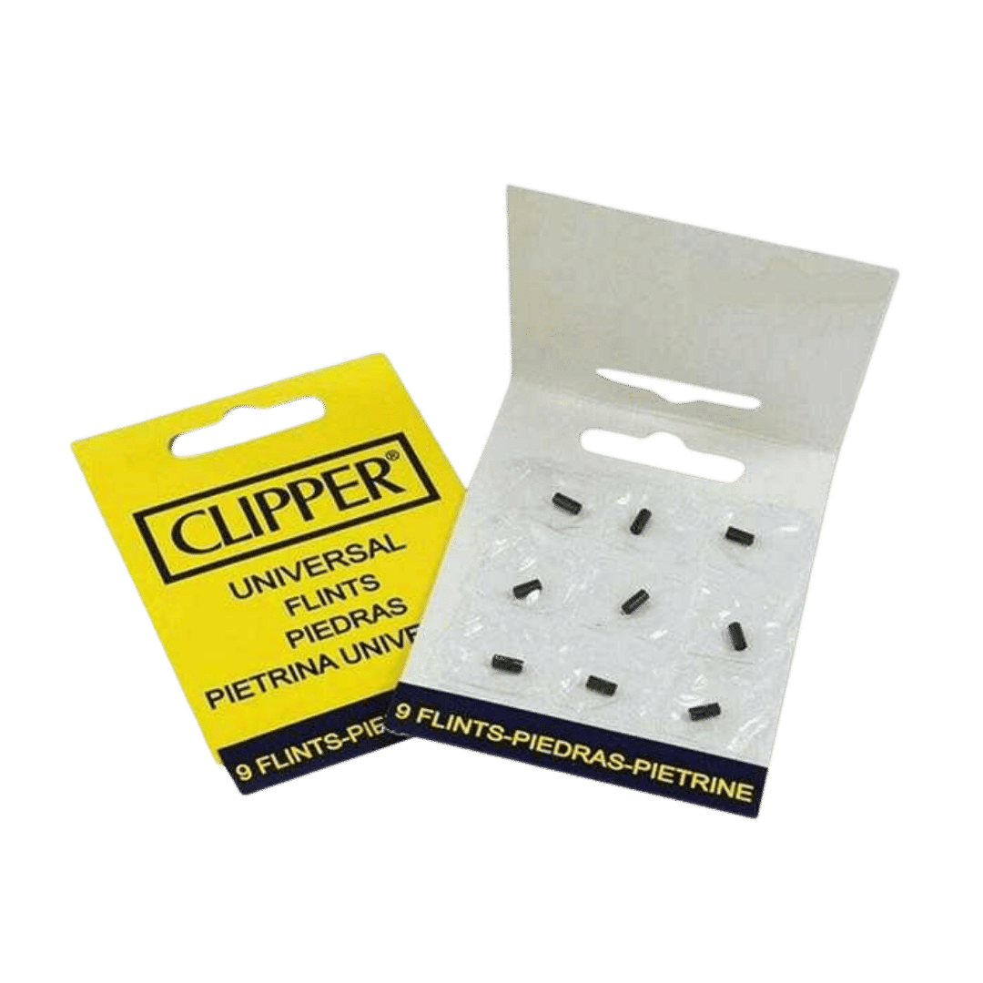 Clipper Lighter Flints – original udskiftningsflint til Clipper lightere. Hver pakke indeholder 9 flints, der sikrer stabil og pålidelig tænding. Let at udskifte og perfekt som refill til din Clipper.