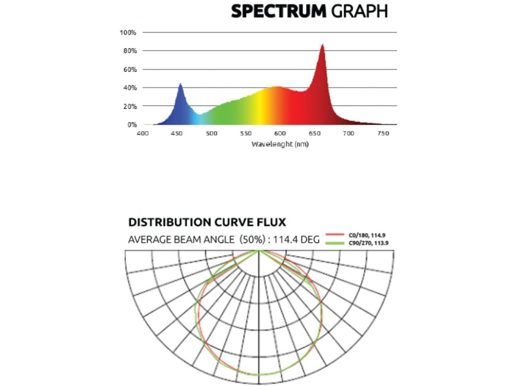 - Top-bin dioder: Samsung LM301H EVO (hvid) og Osram (rød) for et afbalanceret fuldt spektrum.