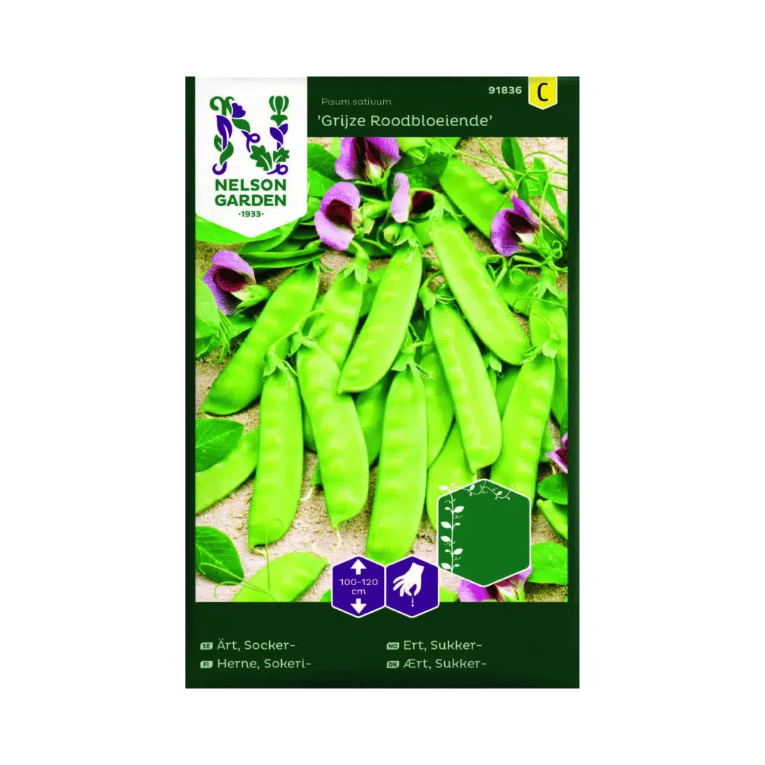 Grijze Roodbloeiende er en traditionsrig sukkerærtesort, der kombinerer smuk blomstring med høj spisekvalitet. Sorten kendetegnes ved sine store blomster og relativt kraftige, tykvæggede bælge med en herligt sød smag. Bælgene spises hele – enten rå, hvor sødmen kommer tydeligt frem, eller let dampede som en delikat grøntsag i varme retter. Sorten sås direkte og giver høst over en lang periode fra sommer til efterår. Grijze Roodbloeiende er et oplagt valg til køkkenhaven, hvor man ønsker både dekorativ værdi og velsmagende udbytte.