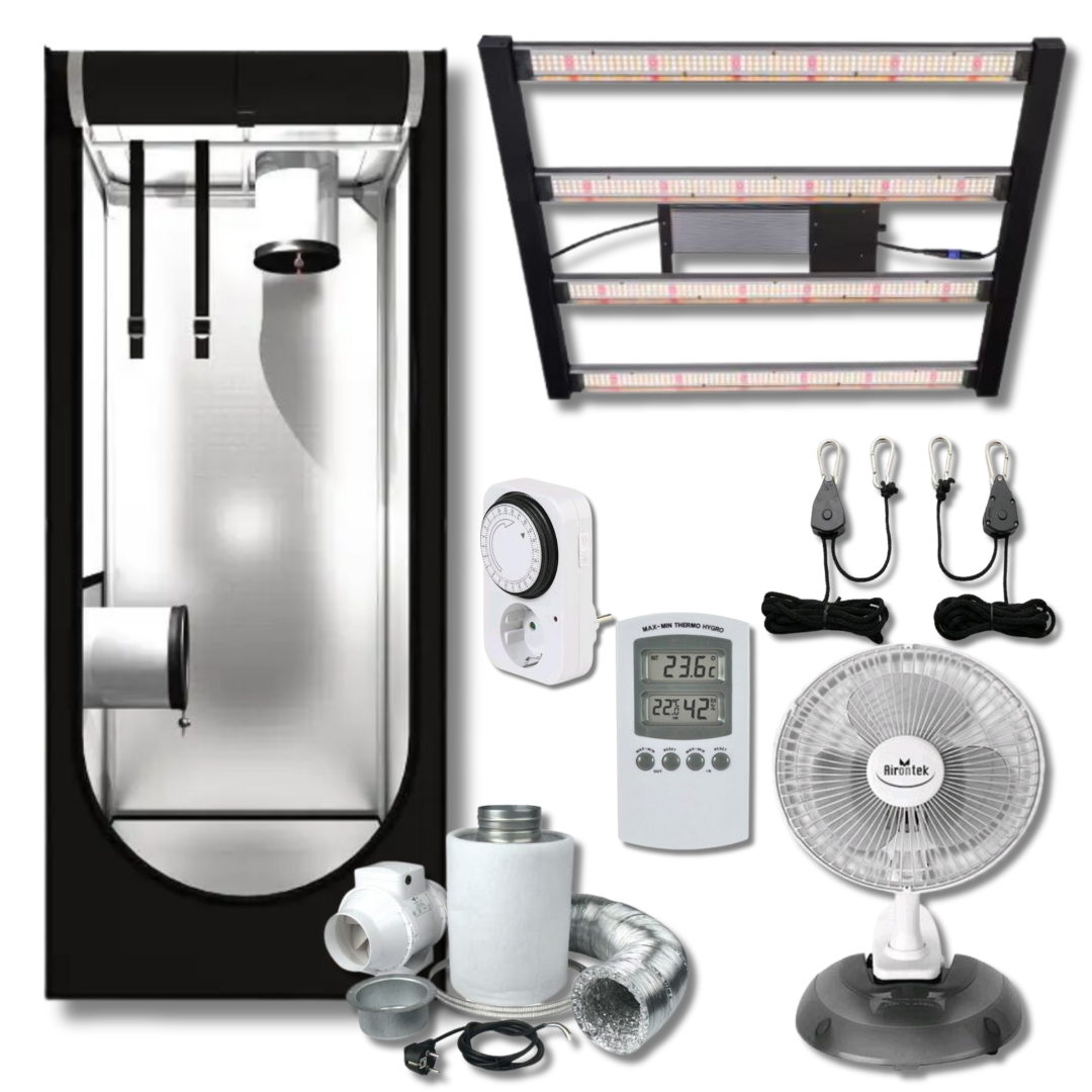 Et Komplet Grokit, der indeholder alt hvad du skal bruge for at skabe et optimalt vækstmiljø for dine planter og dermed et vellykket grow.