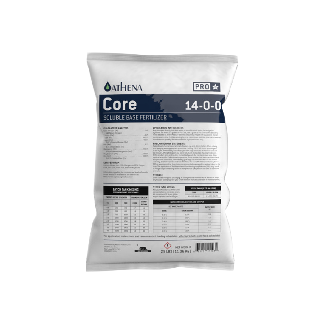 Athena Pro Core er 100 % opløselig, fri for sediment og designet til at fungere problemfrit i recirkulerende systemer, automatiserede doseringsanlæg og hydroponiske opsætninger. Den stabile ionprofil og høje råvarekvalitet gør det til et oplagt valg for professionelle gartnere, der ønsker ensartede resultater og fuld kontrol over næringsprogrammet.