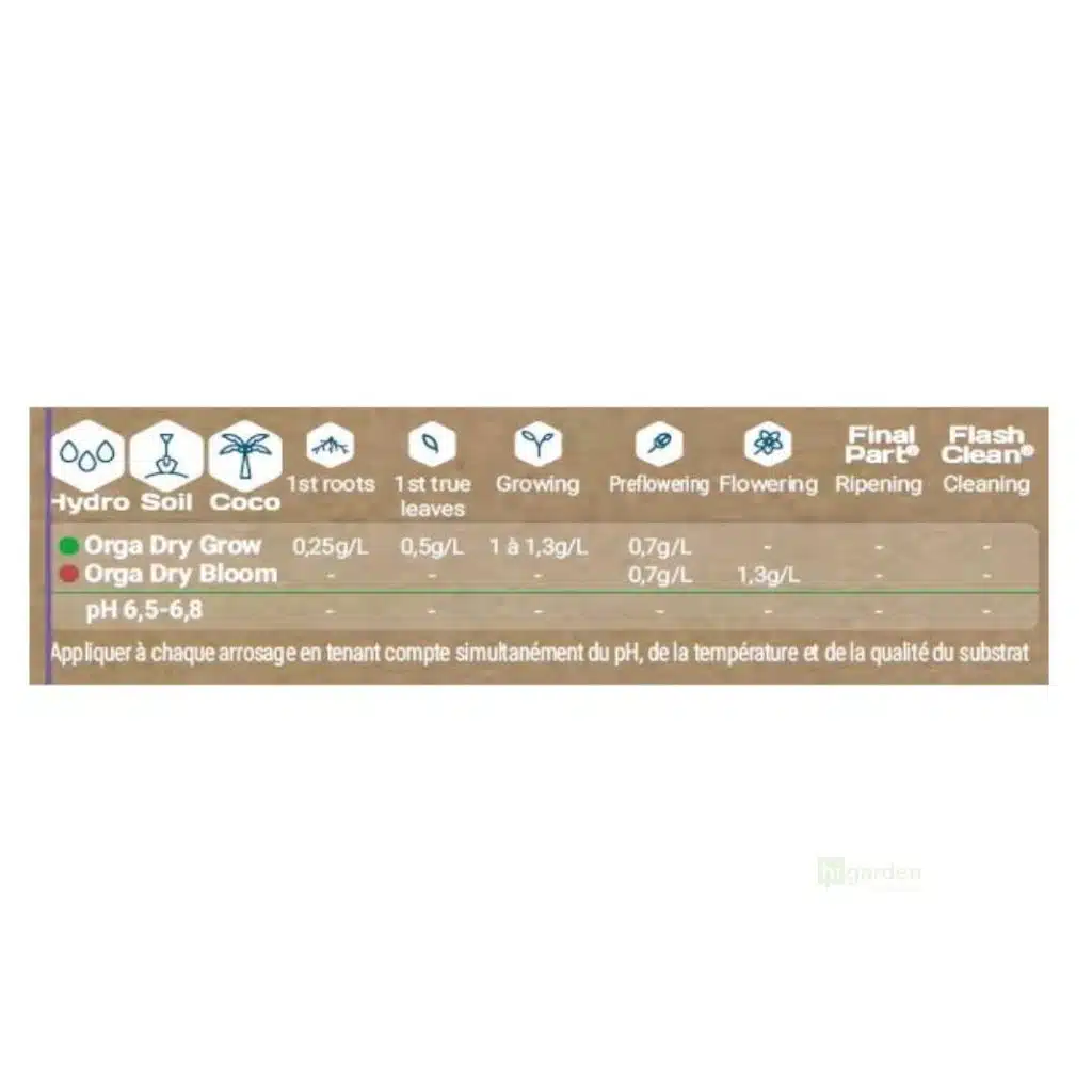 Fås i to forskellige formler – Grow for vegetativ vækst og Bloom til blomstring og frugtsætning – Organic DryPart® understøtter dine planter på alle stadier af deres udvikling: