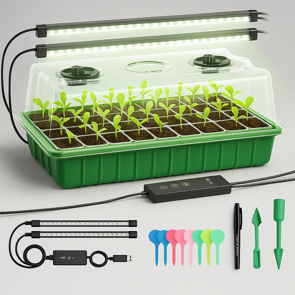 - LED-lys (7–9W) – energieffektivt vækstlys til hurtigere spiring