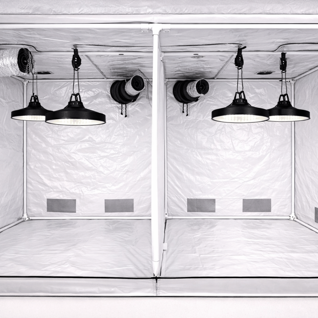 Aflangt grow tent med optimal pladsudnyttelse og jævn lysrefleksion.
