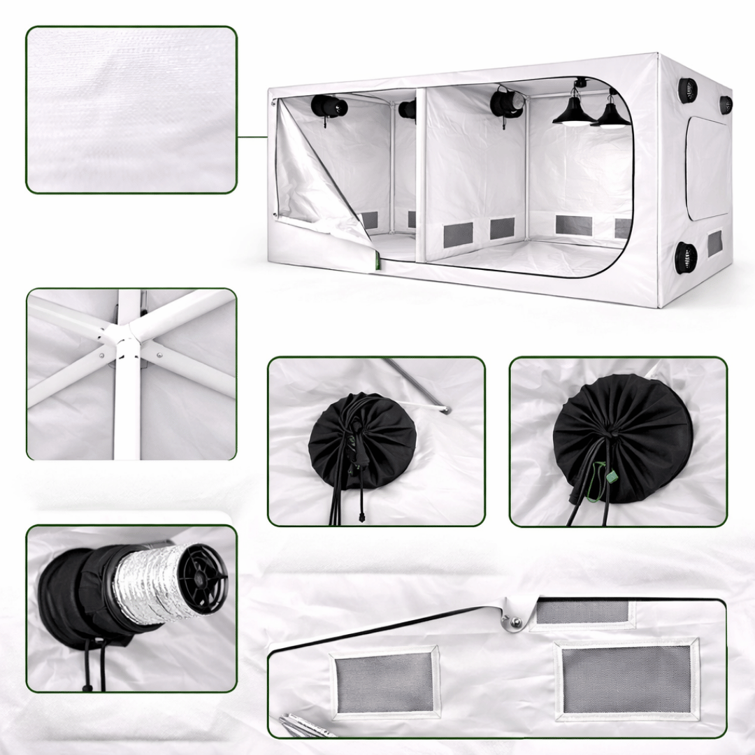 Grow Tent 240x120x200 cm, 600D White, 19 mm stænger